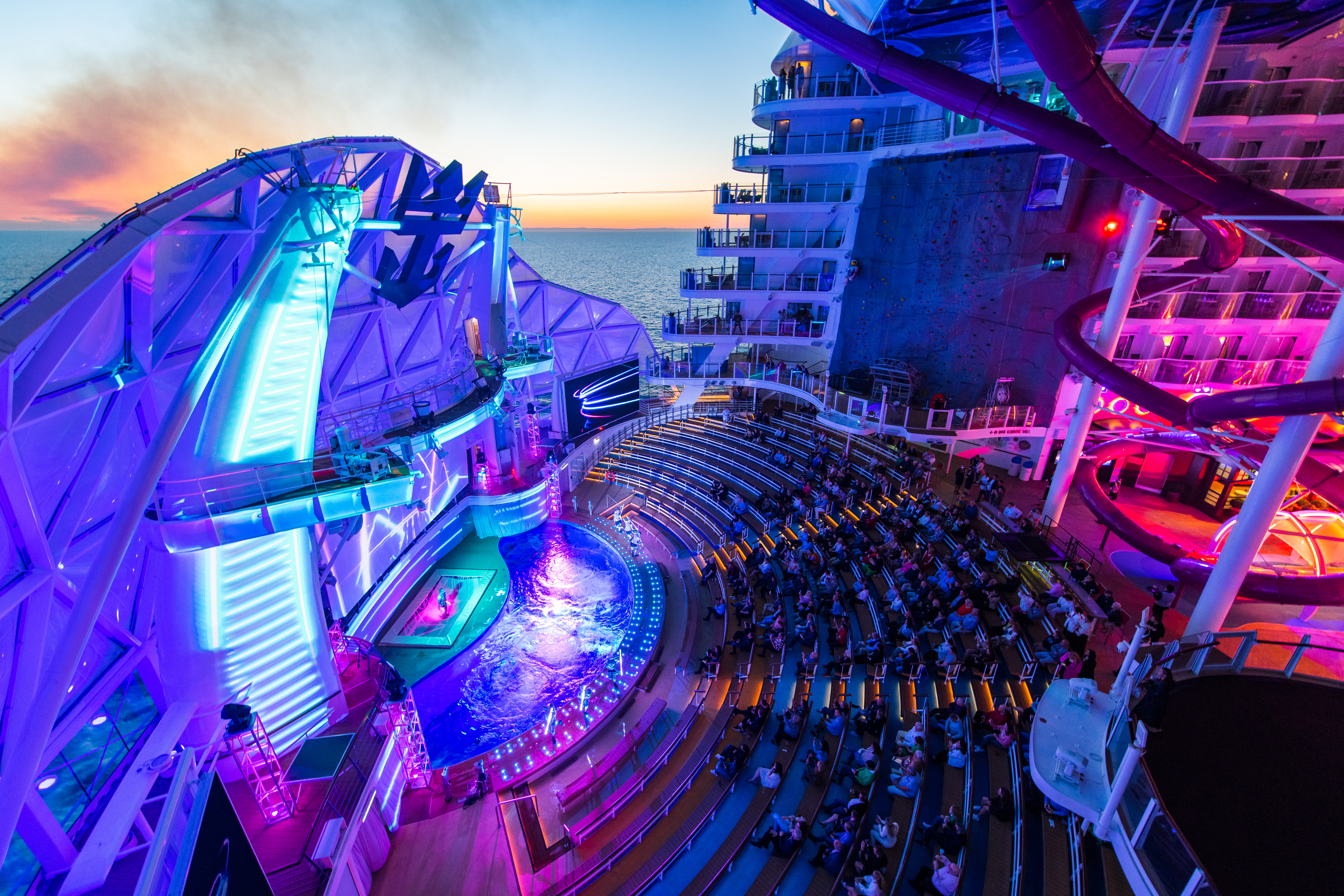 Holiday is no time for tame –and the new Wonder of the Seas definitely ups the ante on leisure time. Whether you’re looking for jawdropping feats at the AquaTheater, your own slice of the spotlight at our signature karaoke bar, or cocktails with a view at the all new Vue Bar.